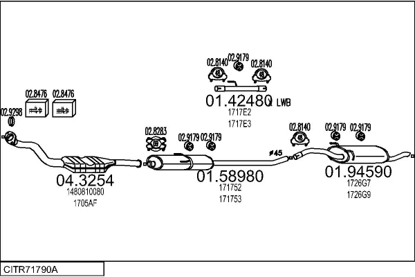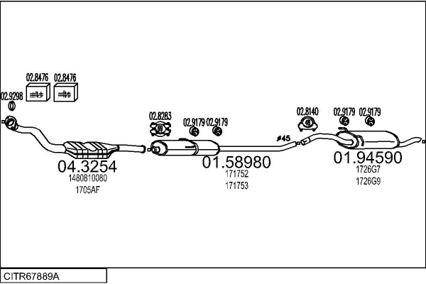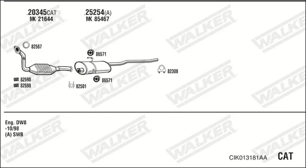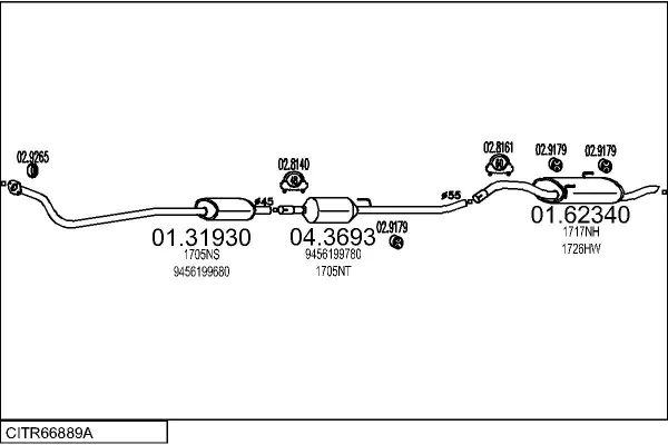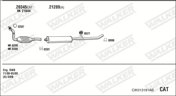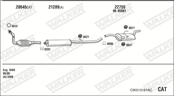 CITROËN JUMPY I (U6U_) 1.9 D 70 - Výfukový systém - kompletní od 4/1998 do 11/2003, 1868 ccm, 51 kW, 69 hp, WJY (DW8B), WJZ (DW8), autobus