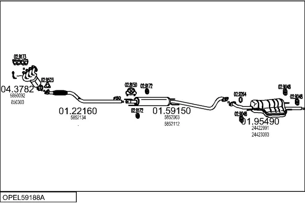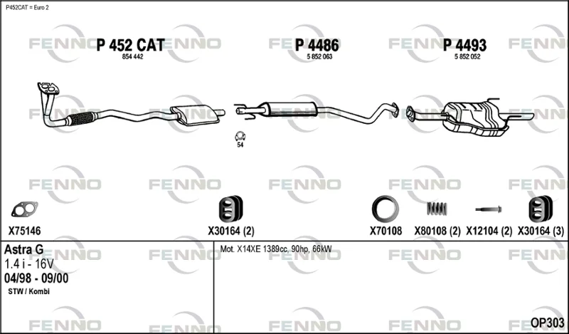 OPEL ASTRA G karoserie/kombi (F70) 1.4 (F70) - Výfukový systém - kompletní od 9/1998 do 4/2005, 1389 ccm, 66 kW, 90 hp, X 14 XE, Z 14 XE, karoserie/kombi