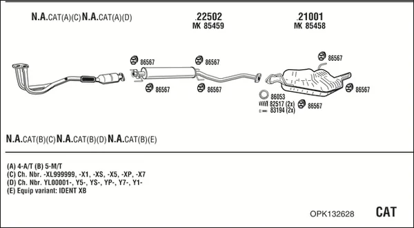 OPEL VECTRA B Šikmá zadní část (J96) 2.2 i 16V (F68) - Výfukový systém - kompletní od 7/2000 do 7/2002, 2198 ccm, 102 kW, 139 hp, C 22 SEL, Šikmá zadní část