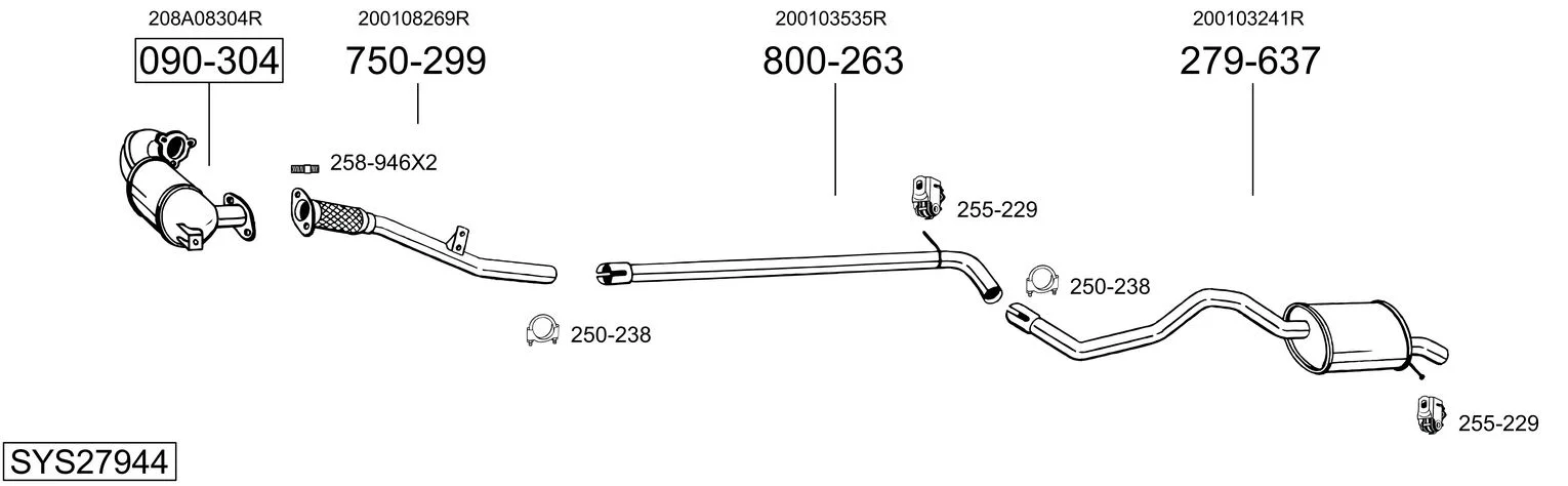 RENAULT CLIO IV Grandtour (KH_) 0.9 TCe 75 (KHNP) - Výfukový systém - kompletní od 8/2018 do 8/2021, 898 ccm, 56 kW, 76 hp, H4B 408, kombi