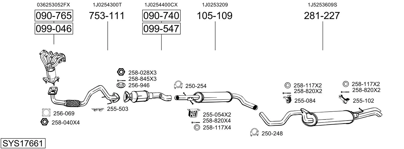 VW GOLF VAN IV Variant (1J5) 1.6 - Výfukový systém - kompletní od 5/2000 do 6/2006, 1598 ccm, 77 kW, 105 hp, AUS, AZD, BCB, karoserie/kombi