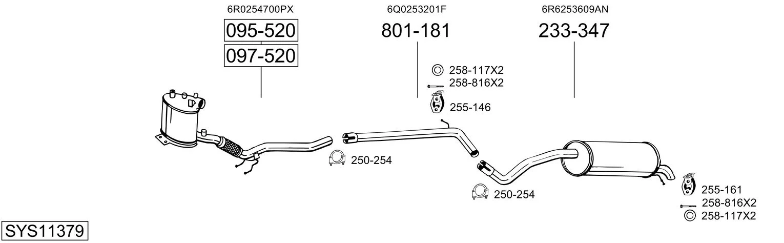 VW POLO Van (6R) 1.2 TDi BlueMotion - Výfukový systém - kompletní od 10/2009 do 5/2014, 1199 ccm, 55 kW, 75 hp, CFWA, Schránky/šikmá záď