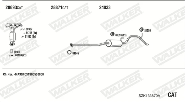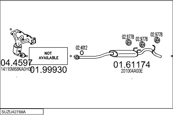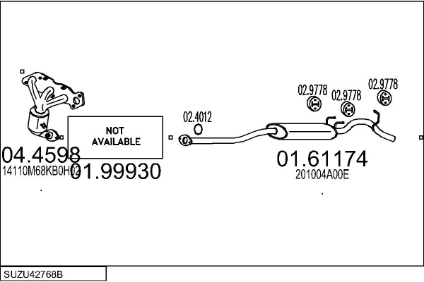 SUZUKI ALTO VII (GF, HA25_, HA35_) 1.0 LPG - Výfukový systém - kompletní od 4/2009, 996 ccm, 50 kW, 68 hp, K10B, Šikmá zadní část
