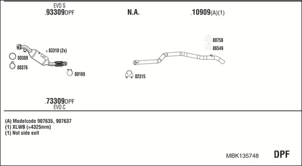 MERCEDES-BENZ SPRINTER 3,5-t Krabice (B907, B910) 314 CDI pohon na 4 kola (907.633, 907.635, 907.637) - Výfukový systém - kompletní od 1/2019 do 12/2021, 2143 ccm, 105 kW, 143 hp, OM 651.958, Krabice