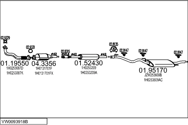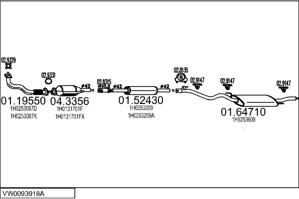 VW GOLF III Van (1H1) 1.8 - Výfukový systém - kompletní od 8/1991 do 7/1995, 1781 ccm, 55 kW, 75 hp, AAM, Schránky/šikmá záď