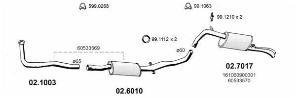 ALFA ROMEO 90 (162_) 2.4 TD (162.B5) - Výfukový systém - kompletní od 10/1984 do 7/1987, 2393 ccm, 81 kW, 110 hp, VM 81 A, limuzína