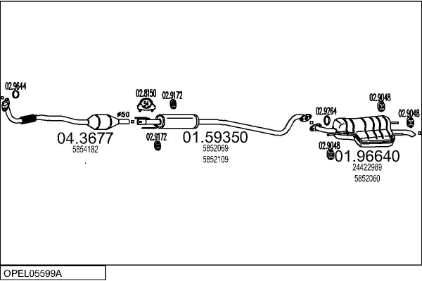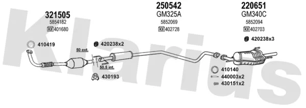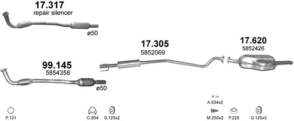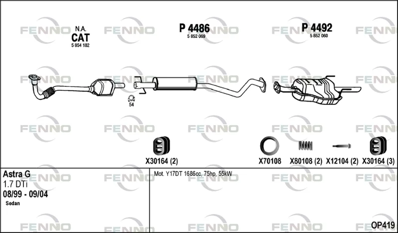 OPEL ASTRA G limuzína (T98) 1.7 DTI 16V (F69) - Výfukový systém - kompletní od 2/2000 do 1/2005, 1686 ccm, 55 kW, 75 hp, Y 17 DT, limuzína