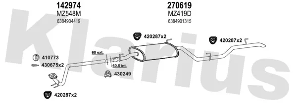 MERCEDES-BENZ VITO Krabice (W638) 112 CDI 2.2 (638.094) - Výfukový systém - kompletní od 3/1999 do 7/2003, 2148 ccm, 90 kW, 122 hp, OM 611.980, Krabice