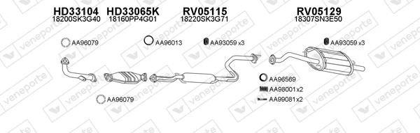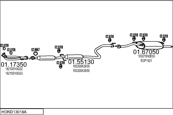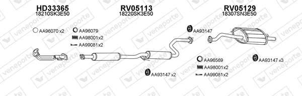 HONDA CONCERTO limuzína (HWW) 1.6 i 16V - Výfukový systém - kompletní od 8/1989 do 3/1995, 1590 ccm, 82 kW, 112 hp, D16Z2, limuzína