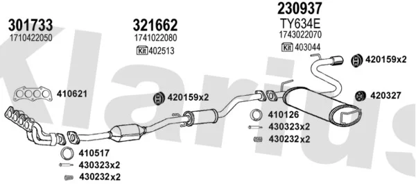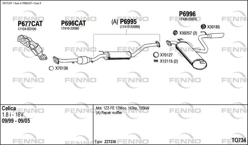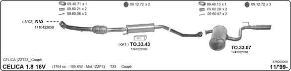 TOYOTA CELICA kupé (_T23_) 1.8 16V VT-i (ZZT230_, ZZT230) - Výfukový systém - kompletní od 8/1999 do 7/2005, 1794 ccm, 105 kW, 143 hp, 1ZZ-FE, kupé