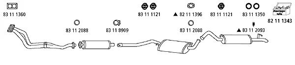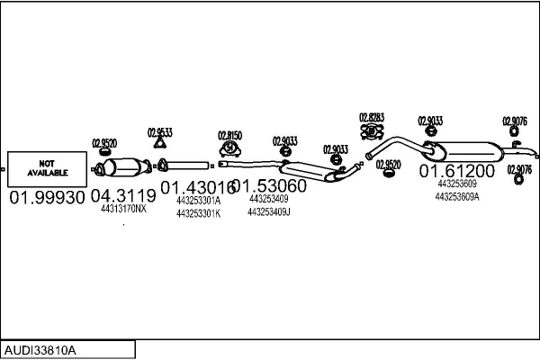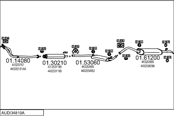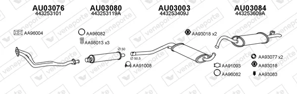 AUDI 100 C3 Avant (445, 446) 1.8 - Výfukový systém - kompletní od 8/1983 do 7/1989, 1781 ccm, 66 kW, 90 hp, DS, JW, NP, SH, kombi