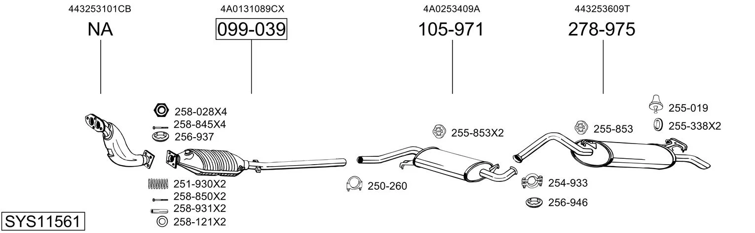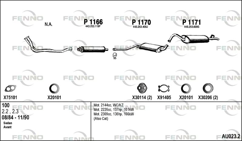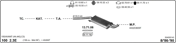 AUDI 100 C3 Avant (445, 446) 2.3 - Výfukový systém - kompletní od 8/1986 do 11/1990, 2309 ccm, 100 kW, 136 hp, NF, kombi