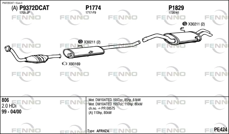 PEUGEOT 806 Van (AF_) HDi (AFRHZC) - Výfukový systém - kompletní od 6/1999 do 2/2003, 1997 ccm, 80 kW, 109 hp, RHZ (DW10ATED), Skříňová/velkoprostorová limuzína