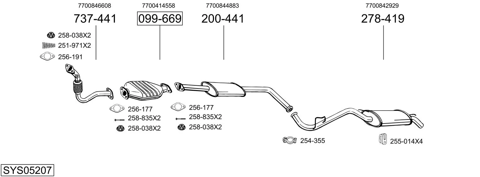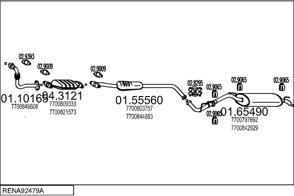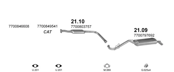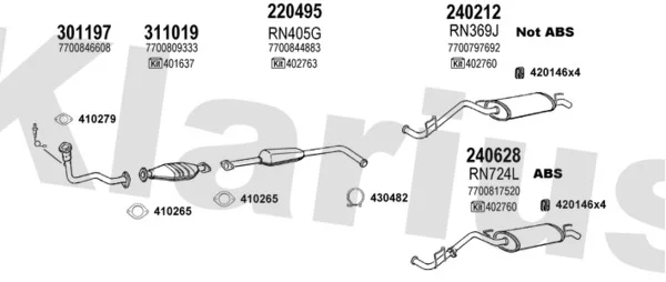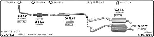 RENAULT CLIO I (B/C57_, 5/357_) 1.2 (5/357Y, 5/357K) - Výfukový systém - kompletní od 1/1996 do 9/1998, 1149 ccm, 40 kW, 54 hp, D7F 730, Šikmá zadní část