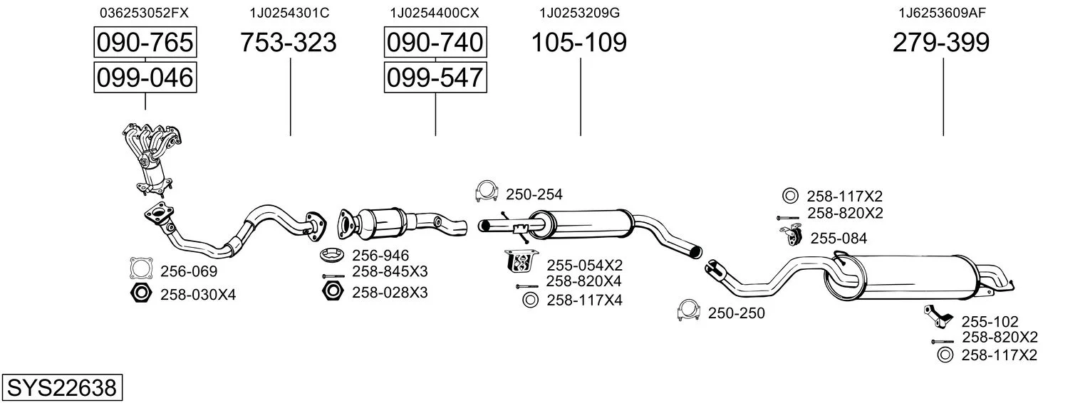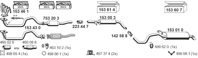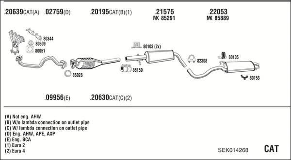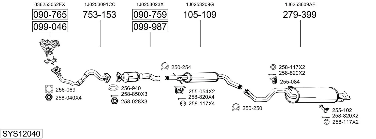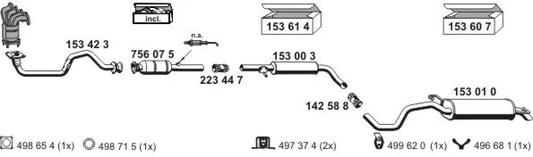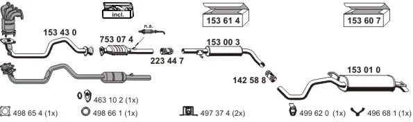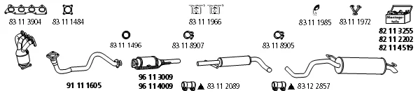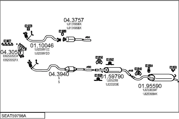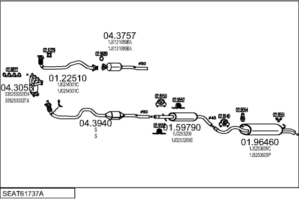 SEAT LEON (1M1) 1.4 16V - Výfukový systém - kompletní od 11/1999 do 6/2006, 1390 ccm, 55 kW, 75 hp, AHW, APE, AXP, BCA, Šikmá zadní část