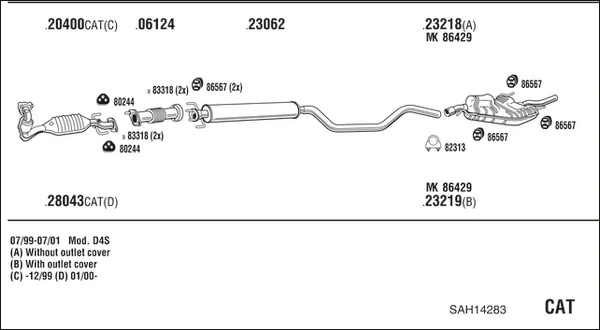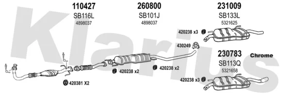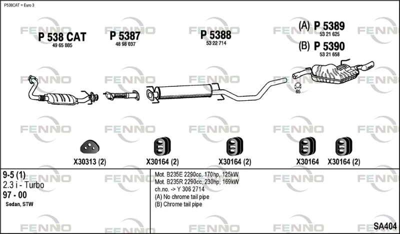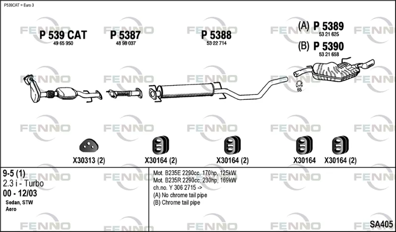 SAAB 9-5 (YS3E) 2.3 Turbo - Výfukový systém - kompletní od 10/1999 do 9/2001, 2290 ccm, 169 kW, 230 hp, B235R, limuzína