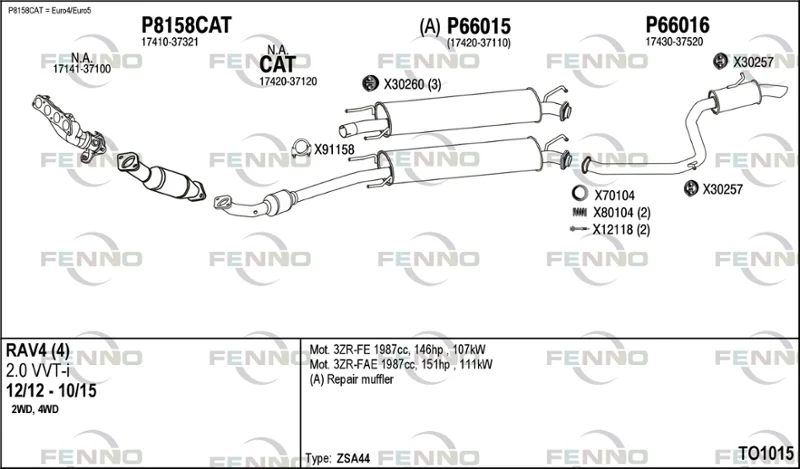 TOYOTA RAV 4 IV VAN (_A4_) 2.0 VVTi 4WD (ZSA44) - Výfukový systém - kompletní od 12/2012 do 11/2018, 1987 ccm, 112 kW, 152 hp, 3ZR-FAE, Skříň/SUV
