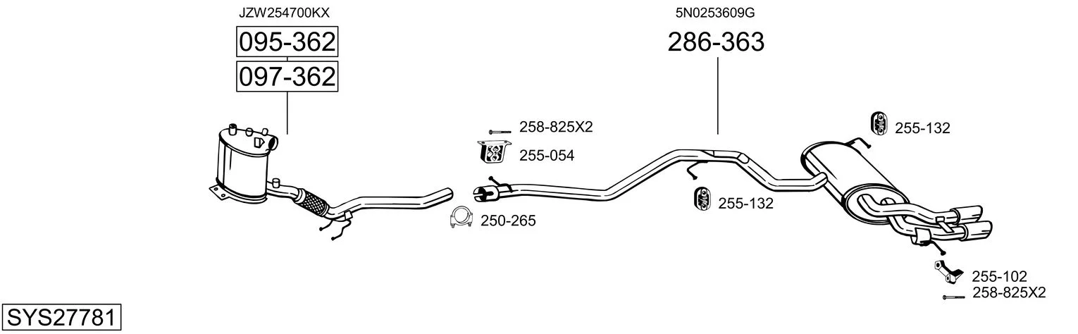 VW TIGUAN VAN (5N_) 2.0 TDI 4motion (5N1, 5N2) - Výfukový systém - kompletní od 5/2010 do 5/2013, 1968 ccm, 125 kW, 170 hp, CFGB, Skříň/SUV