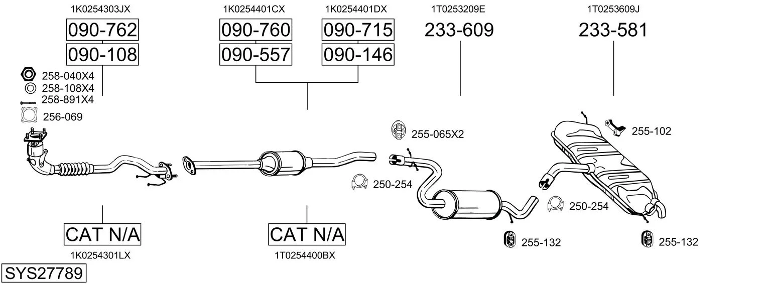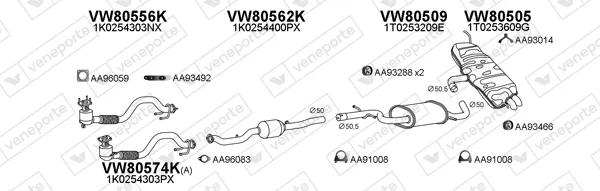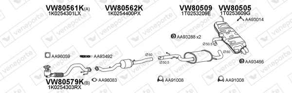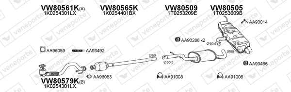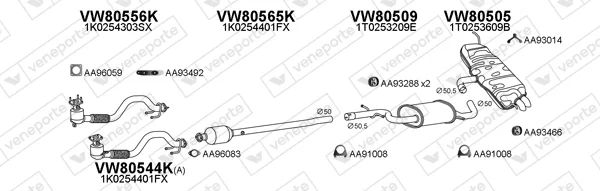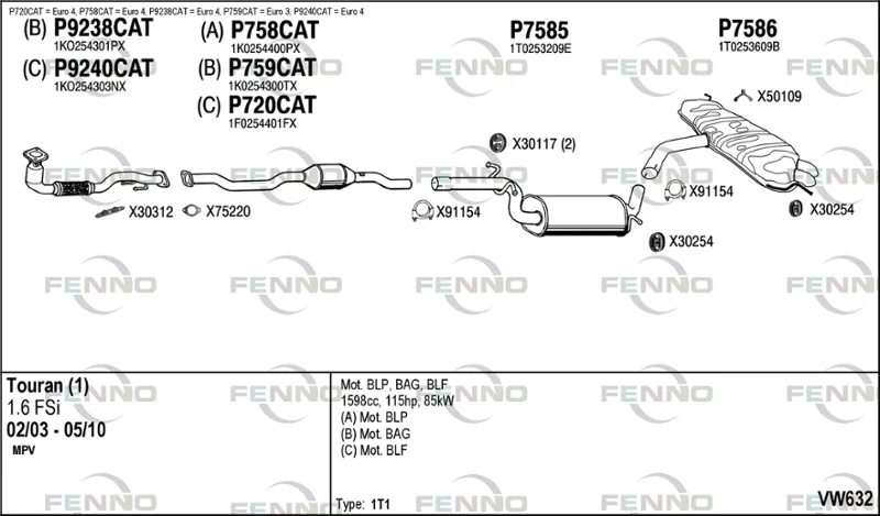 VW TOURAN VAN (1T1, 1T2) FSI - Výfukový systém - kompletní od 2/2003 do 11/2006, 1598 ccm, 85 kW, 116 hp, BAG, BLF, BLP, Skříňová/velkoprostorová limuzína