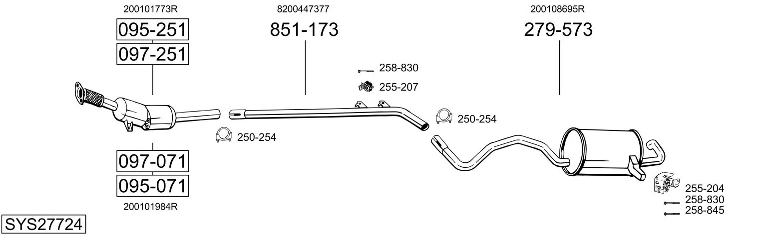 RENAULT SCÉNIC III VAN (JZ0/1_) 1.9 dCi (JZ0J, JZ1J, JZ1K, JZ1S) - Výfukový systém - kompletní od 1/2013 do 9/2016, 1870 ccm, 96 kW, 131 hp, F9Q 870, F9Q 872, Skříňová/velkoprostorová limuzína