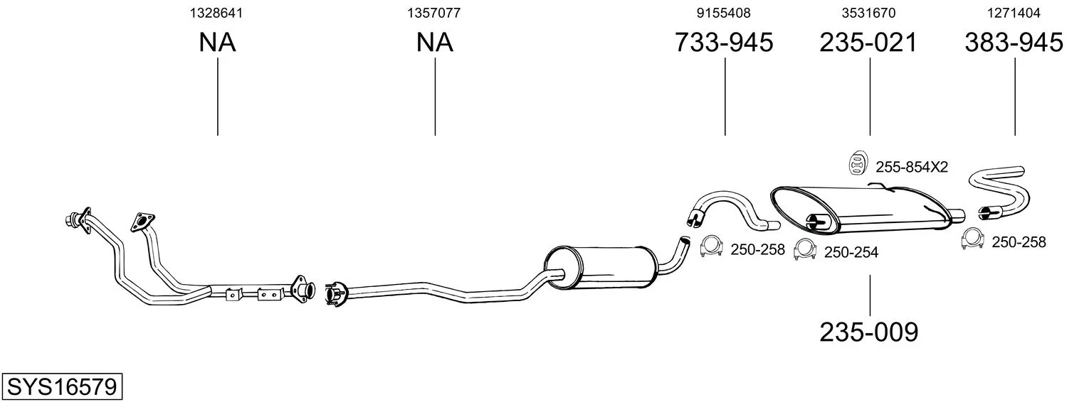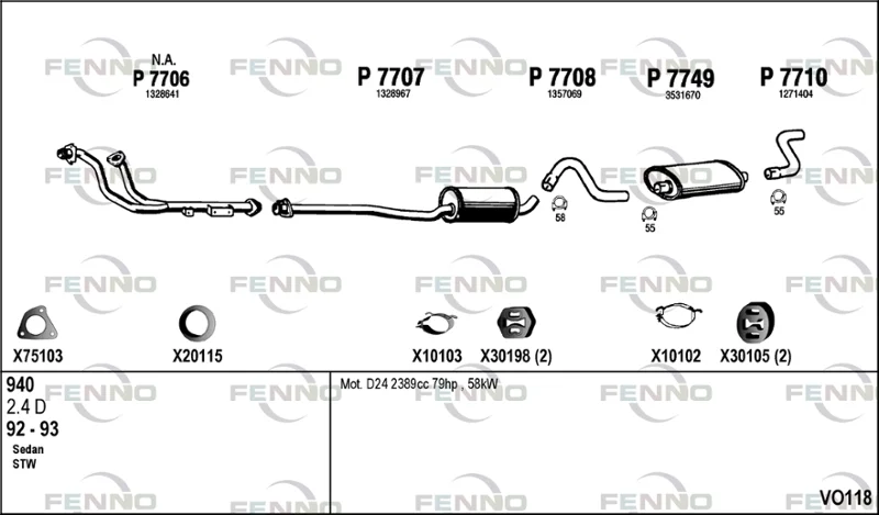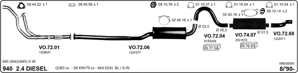 VOLVO 940 (944) 2.4 D - Výfukový systém - kompletní od 8/1990 do 12/1994, 2383 ccm, 60 kW, 82 hp, D 24, limuzína
