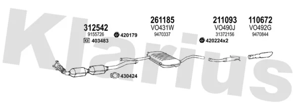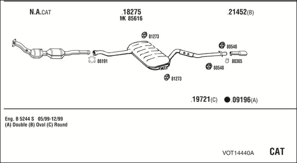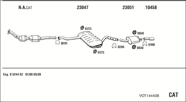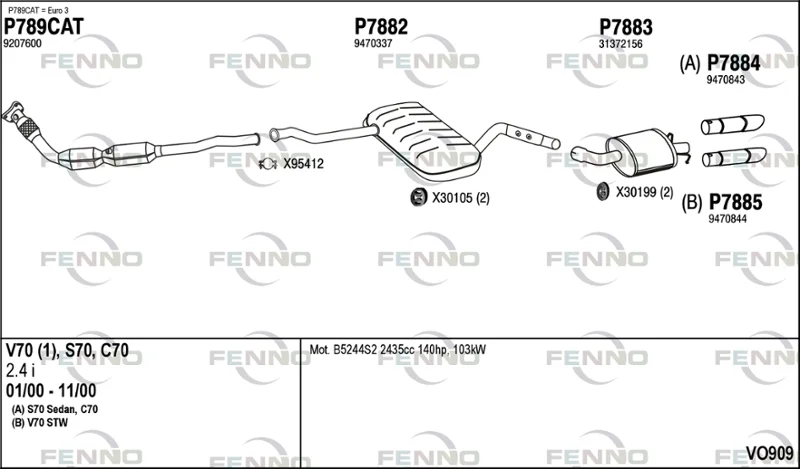 VOLVO V70 I (875, 876) 2.4 - Výfukový systém - kompletní od 3/1999 do 12/2000, 2435 ccm, 103 kW, 140 hp, B 5244 S2, B 5244 SG2, kombi