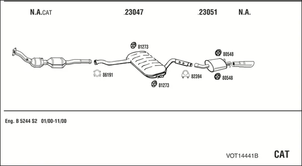 VOLVO S70 (874) 2.4 - Výfukový systém - kompletní od 8/1999 do 11/2000, 2435 ccm, 103 kW, 140 hp, B 5244 S2, B 5244 SG, limuzína
