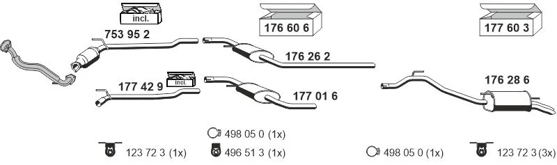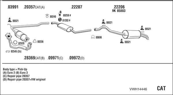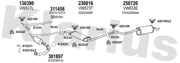 VW TRANSPORTER T4 valník/podvozek (70E, 70L, 70M, 7DE, 7DL, 7DM 2.5 TDI - Výfukový systém - kompletní od 5/1998 do 4/2003, 2461 ccm, 65 kW, 88 hp, AJT, AYY, valník/podvozek