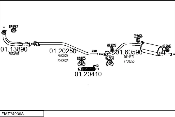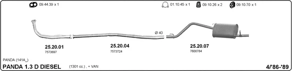 FIAT PANDA (141_) 1300 D - Výfukový systém - kompletní od 4/1986 do 12/1992, 1302 ccm, 27 kW, 37 hp, 156 A5.000, Šikmá zadní část