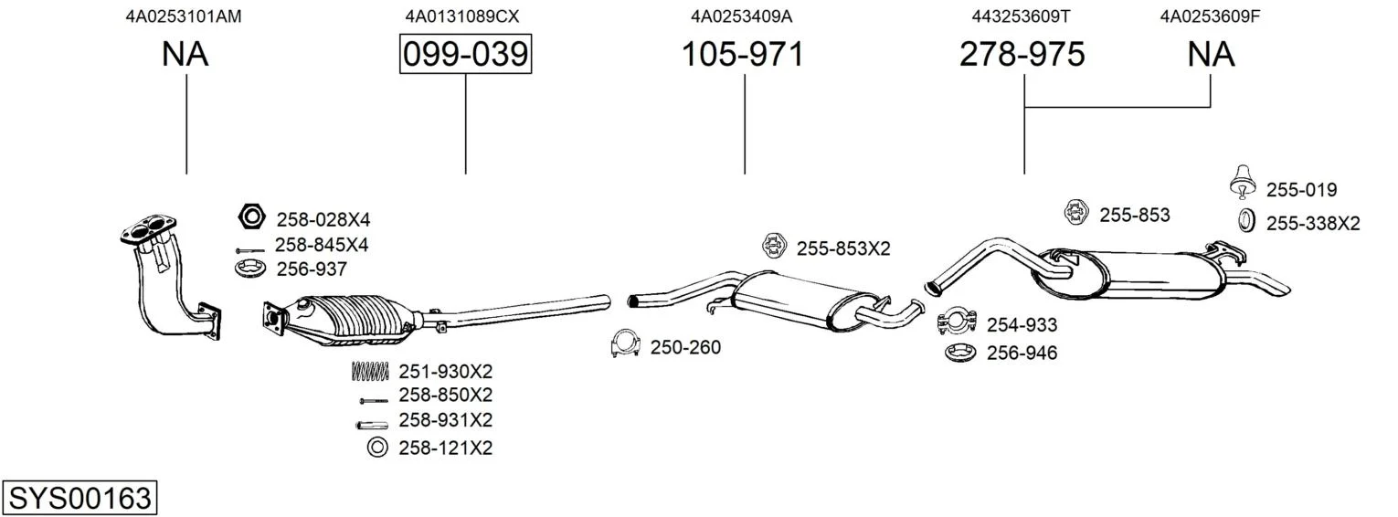 AUDI 100 C4 Avant (4A5) 2.3 E - Výfukový systém - kompletní od 9/1991 do 7/1994, 2309 ccm, 98 kW, 133 hp, AAR, kombi