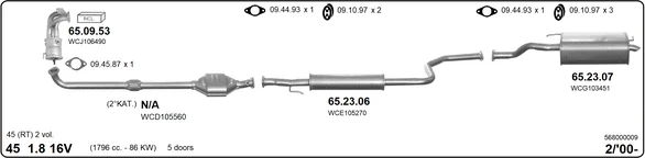 ROVER 45 I Šikmá zadní část (RT) 1.8 - Výfukový systém - kompletní od 2/2000 do 5/2005, 1796 ccm, 86 kW, 117 hp, 18 K4F, Šikmá zadní část