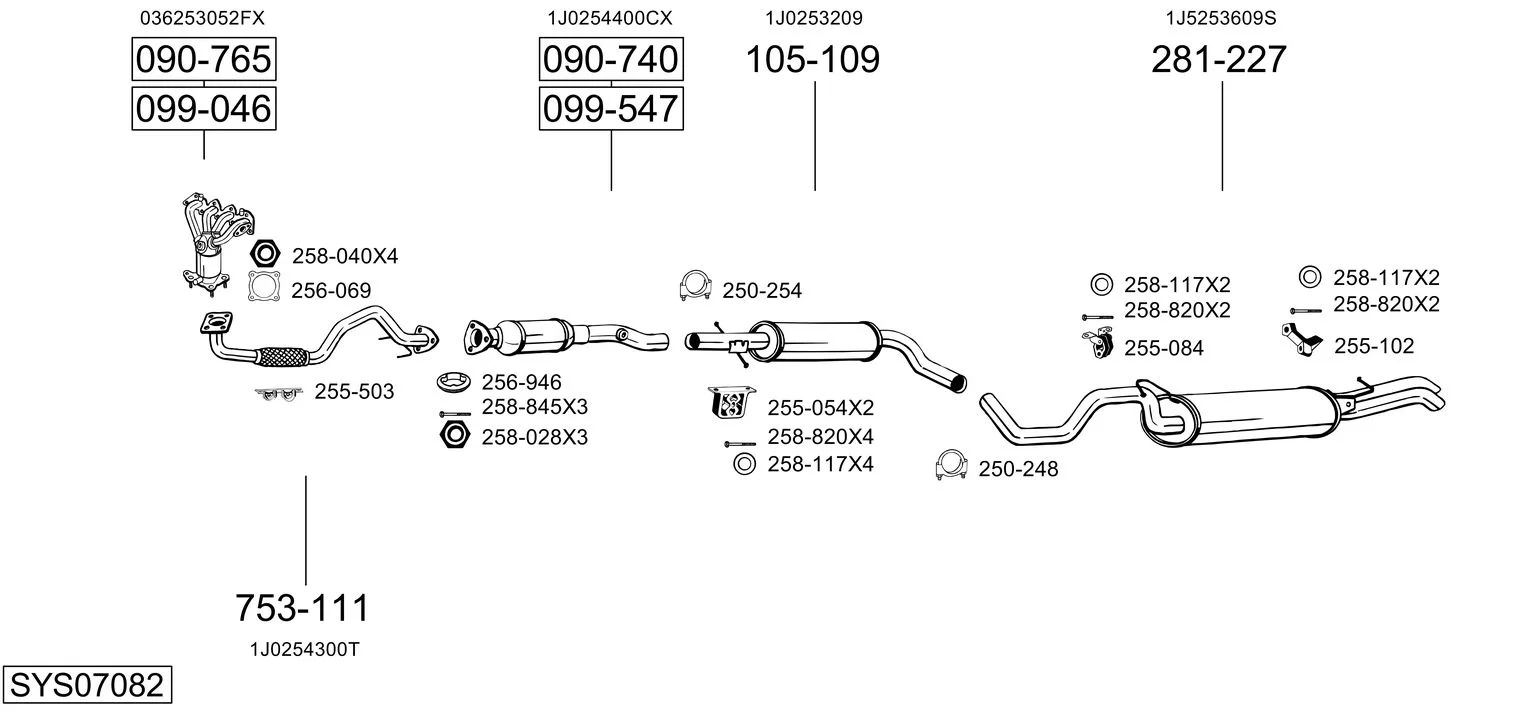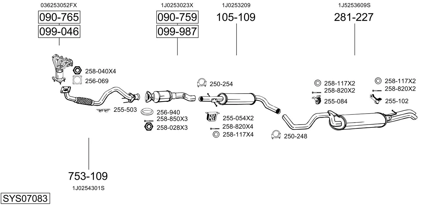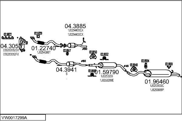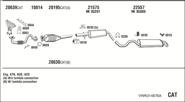 VW BORA I (1J2) 1.6 16V - Výfukový systém - kompletní od 5/2000 do 5/2005, 1598 ccm, 77 kW, 105 hp, ATN, AUS, AZD, BCB, limuzína