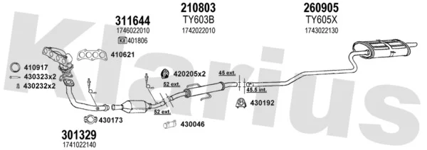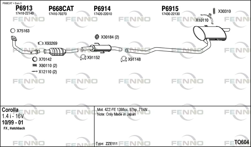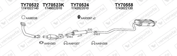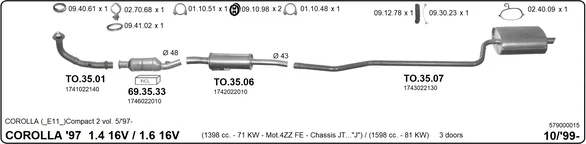 TOYOTA COROLLA Compact (_E11_) 1.4 (ZZE111_, ZZE111R) - Výfukový systém - kompletní od 10/1999 do 1/2002, 1398 ccm, 71 kW, 97 hp, 4ZZ-FE, Šikmá zadní část