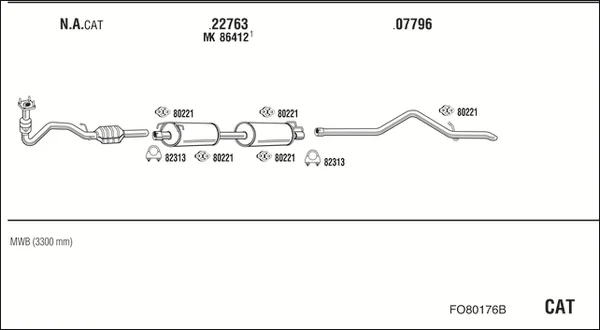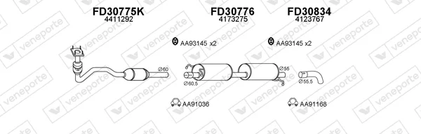 FORD TRANSIT valník/podvozek (FM_ _, FN_ _) 2.4 DI (F_A_, F_B_, F_C_, F_D_) - Výfukový systém - kompletní od 1/2000 do 5/2006, 2402 ccm, 66 kW, 90 hp, D2FA, D2FB, D2FE, valník/podvozek