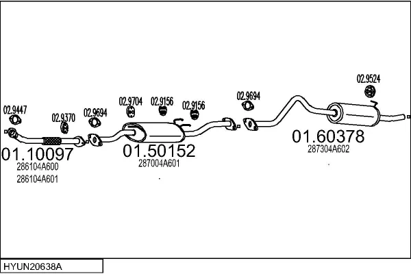 HYUNDAI STAREX Krabice (A1) 2.5 TD - Výfukový systém - kompletní od 3/2000 do 9/2000, 2476 ccm, 59 kW, 80 hp, D4BF, Krabice