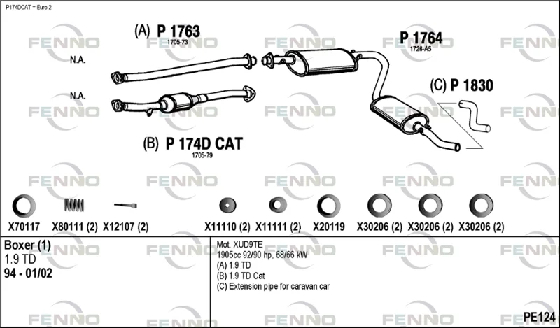 PEUGEOT BOXER Krabice (230L) 1.9 TD - Výfukový systém - kompletní od 7/1999 do 4/2002, 1905 ccm, 66 kW, 90 hp, XUD9TE, Krabice