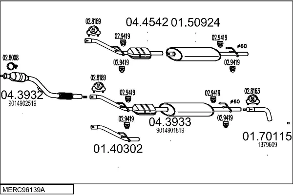MERCEDES-BENZ SPRINTER 3-t Krabice (B903) 313 CDI (903.663, 903.662, 903.661) - Výfukový systém - kompletní od 4/2000 do 5/2006, 2148 ccm, 95 kW, 129 hp, OM 611.981, Krabice
