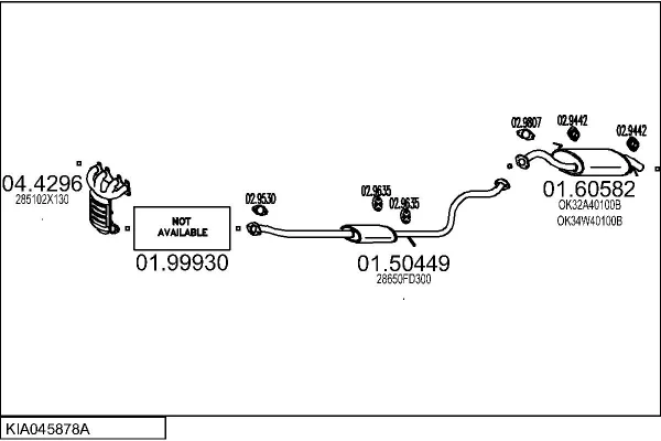 KIA RIO I Šikmá zadní část (DC) 1.3 - Výfukový systém - kompletní od 8/2000 do 2/2005, 1343 ccm, 60 kW, 82 hp, A3E, Šikmá zadní část