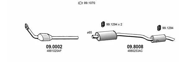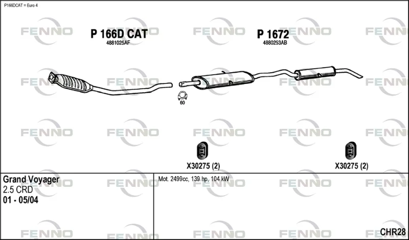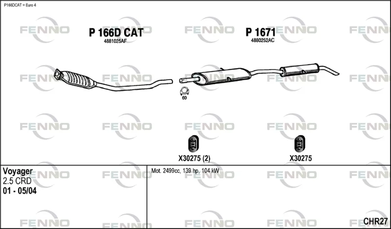 CHRYSLER VOYAGER IV (RG, RS) 2.5 CRD - Výfukový systém - kompletní od 2/2000 do 12/2008, 2499 ccm, 105 kW, 141 hp, ENJ, velkoprostorová limuzína