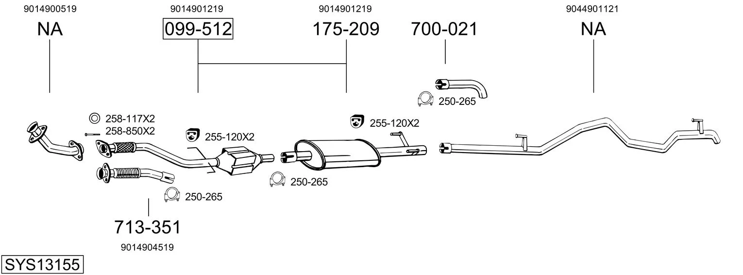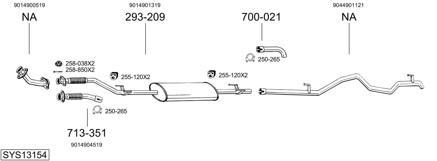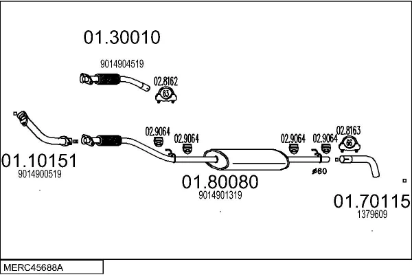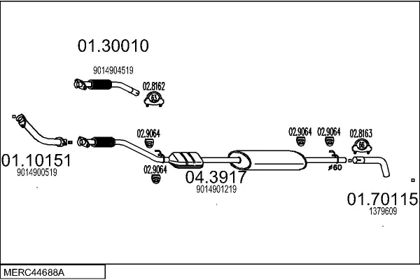 MERCEDES-BENZ SPRINTER 4-t valník/podvozek (B904) 412 D 4x4 - Výfukový systém - kompletní od 5/1997 do 5/2006, 2874 ccm, 85 kW, 115 hp, OM 602.980, valník/podvozek