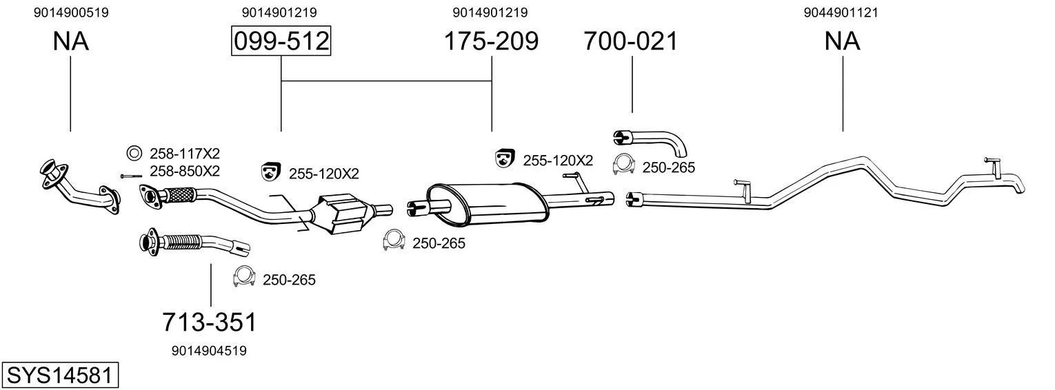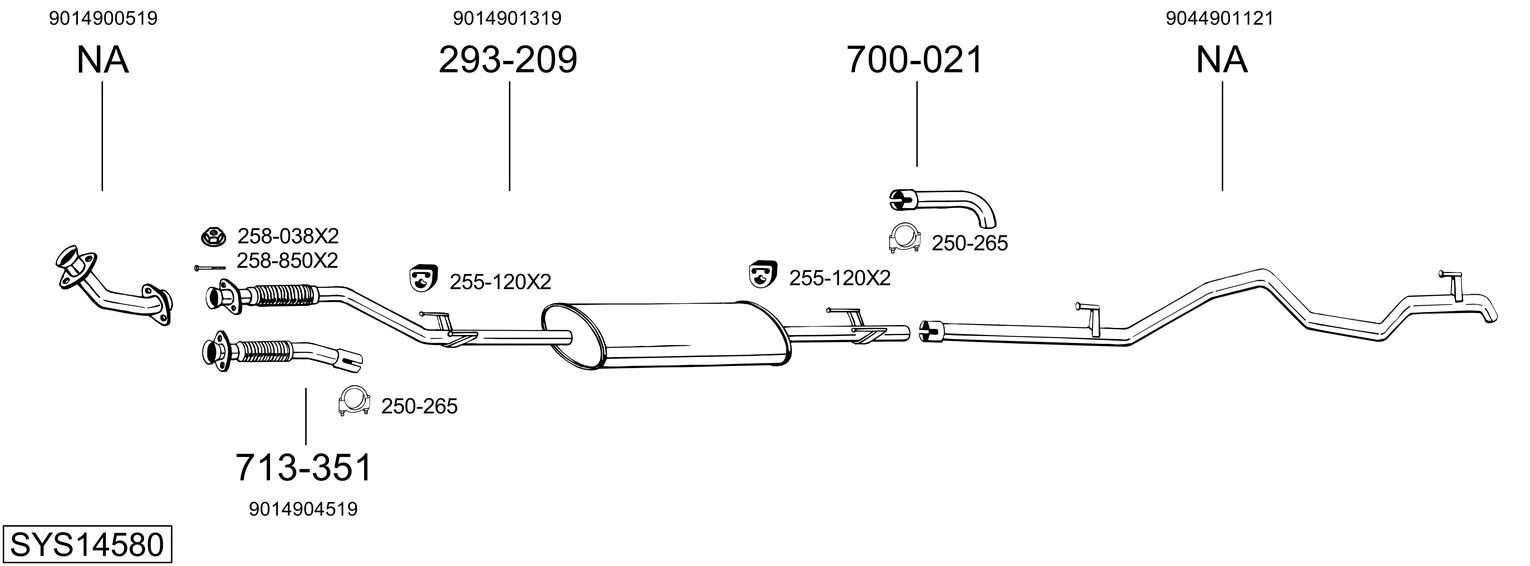 MERCEDES-BENZ SPRINTER 4-t valník/podvozek (B904) 412 D 4x4 - Výfukový systém - kompletní od 5/1997 do 5/2006, 2874 ccm, 90 kW, 122 hp, OM 602.980, valník/podvozek