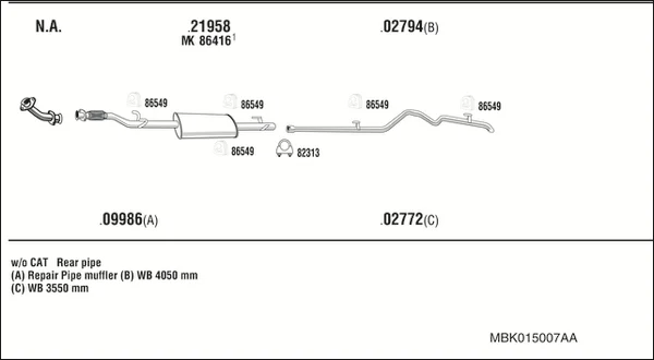 MERCEDES-BENZ SPRINTER 4-t Krabice (B904) 412 D - Výfukový systém - kompletní od 2/1996 do 5/2006, 2874 ccm, 85 kW, 115 hp, OM 602.980, Krabice