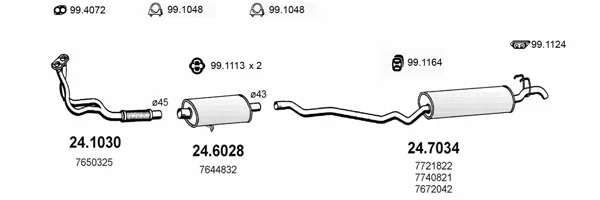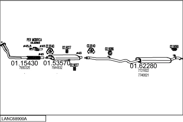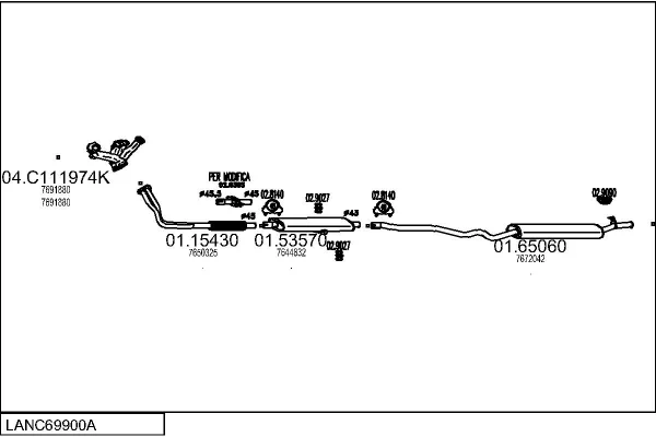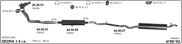 LANCIA DEDRA (835_) 1.6 i.e. (835AA) - Výfukový systém - kompletní od 8/1989 do 6/1994, 1581 ccm, 66 kW, 90 hp, 835 A1.000, limuzína