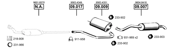 CITROËN BX (XB-_) 19 - Výfukový systém - kompletní od 7/1986 do 5/1989, 1905 ccm, 77 kW, 105 hp, D2A (XU92C), Šikmá zadní část