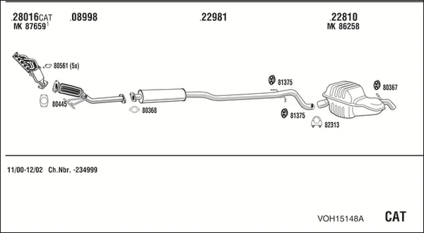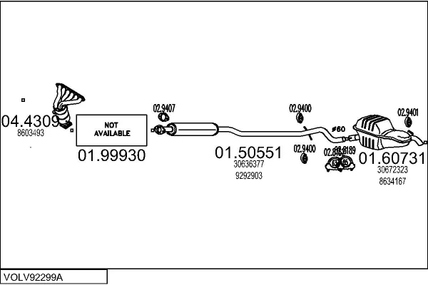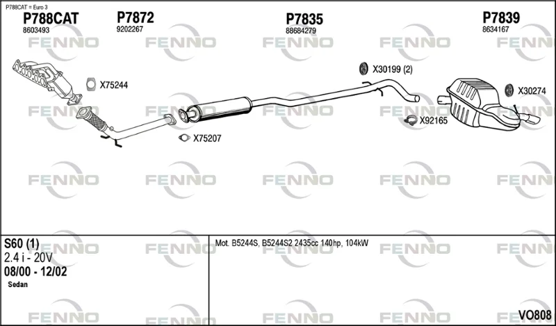 VOLVO S60 I (384) 2.4 - Výfukový systém - kompletní od 7/2000 do 4/2010, 2435 ccm, 103 kW, 140 hp, B 5244 S2, limuzína