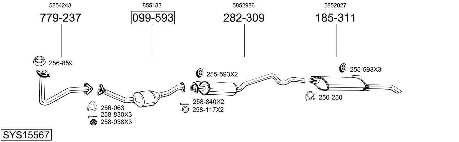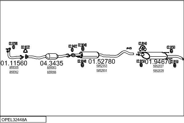 OPEL ASTRA F CLASSIC limuzína (T92) 1.6 i (F19, M19) - Výfukový systém - kompletní od 1/1998 do 8/2002, 1598 ccm, 55 kW, 75 hp, X 16 SZR, limuzína