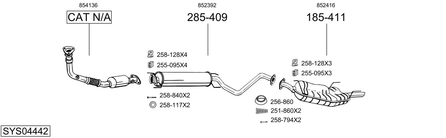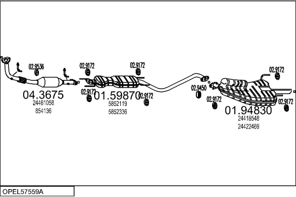 OPEL VECTRA B Šikmá zadní část (J96) 2.2 i 16V (F68) - Výfukový systém - kompletní od 9/2000 do 7/2003, 2198 ccm, 108 kW, 147 hp, Z 22 SE, Šikmá zadní část
