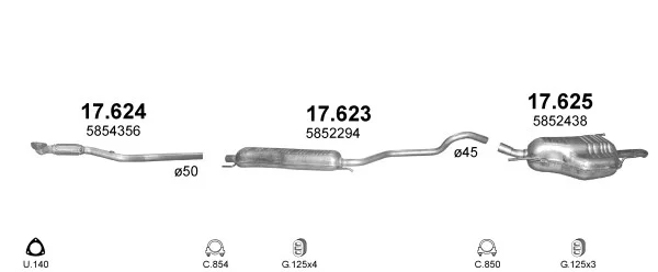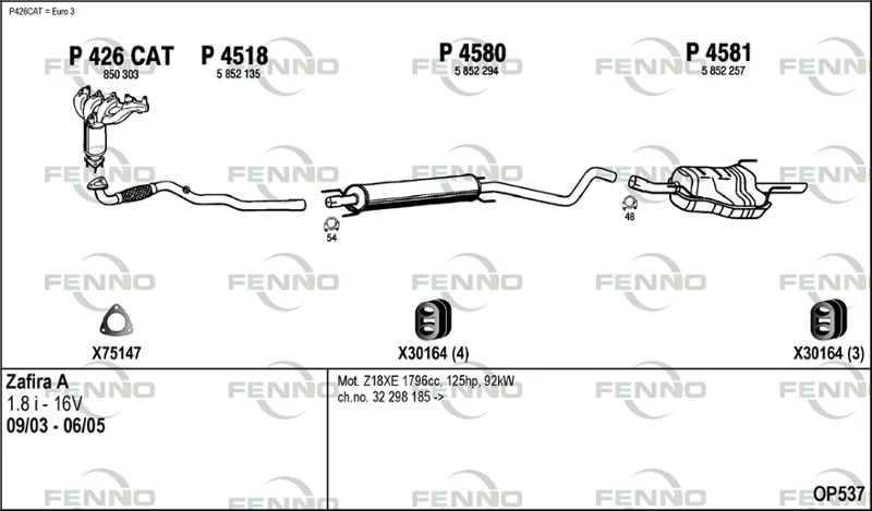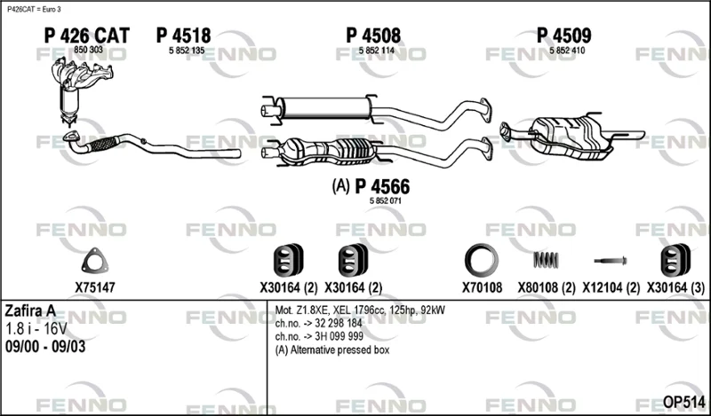 OPEL ZAFIRA A velkoprostorová limuzína (T98) 1.8 16V (F75) - Výfukový systém - kompletní od 9/2000 do 6/2005, 1796 ccm, 92 kW, 125 hp, Z 18 XE, velkoprostorová limuzína