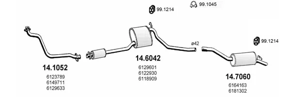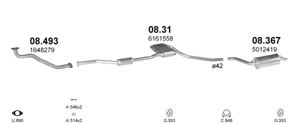 FORD SIERRA Turnier (BNC) 2.3 D - Výfukový systém - kompletní od 8/1982 do 12/1986, 2304 ccm, 49 kW, 67 hp, YTT, kombi