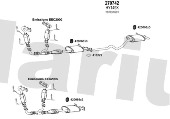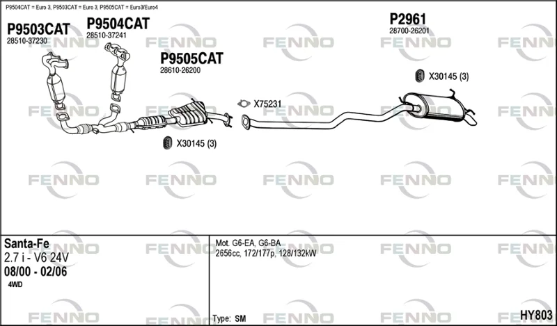 HYUNDAI SANTA FÉ I (SM) 2.7 V6 4x4 - Výfukový systém - kompletní od 2/2001 do 3/2006, 2656 ccm, 127 kW, 173 hp, G6BA, SUV